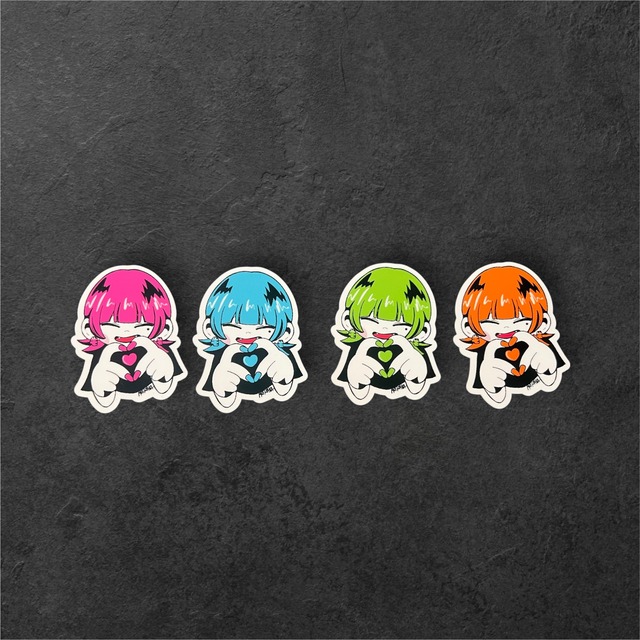 ネオンカラーオルティちゃん4色セット スパファンの方には ガビティが1枚ついてくる!? サイズ感はスマホに収まる6センチくらいです。